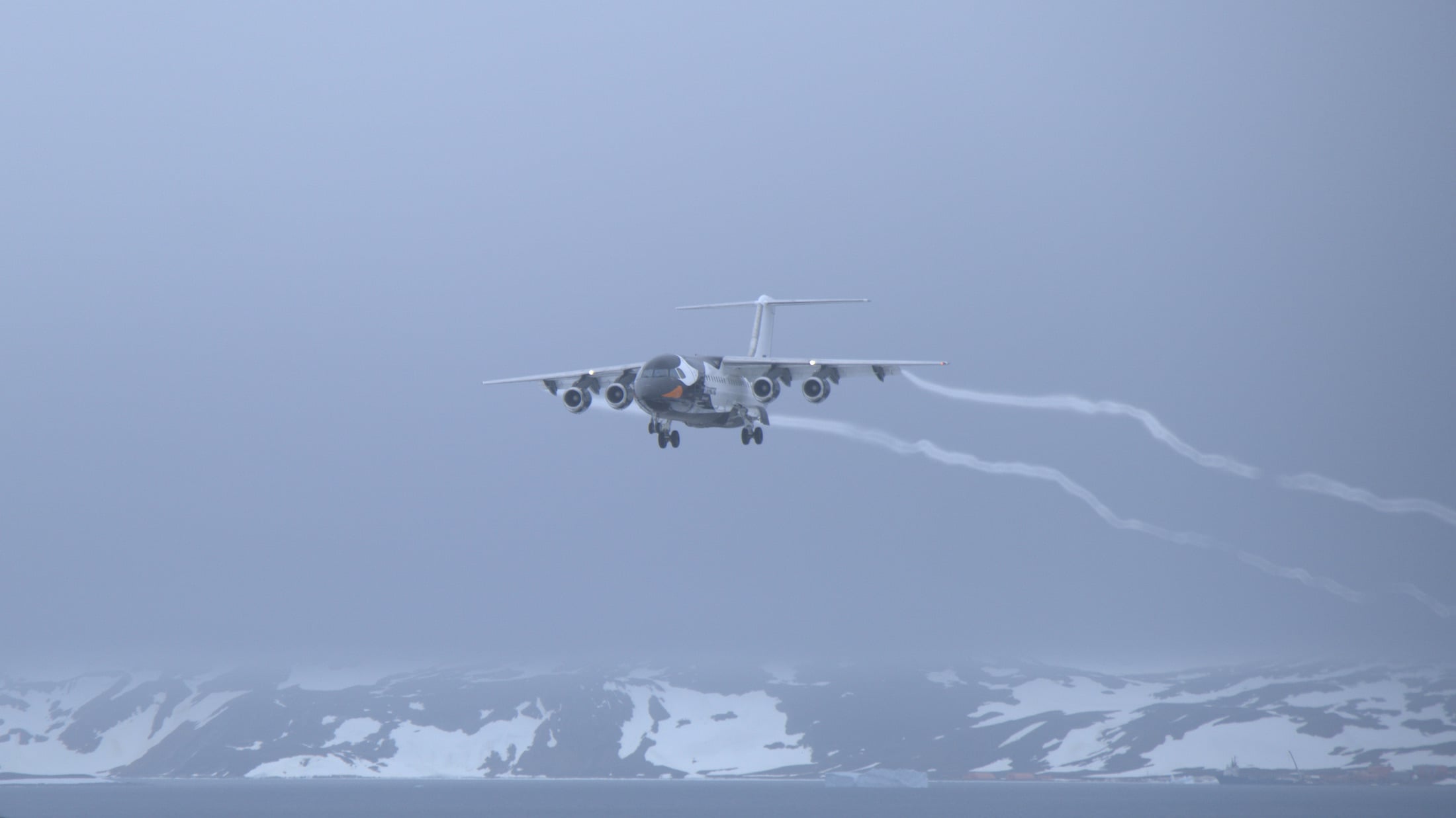 Antarctic Airways plane landing on King George Island in the South Shetland Islands